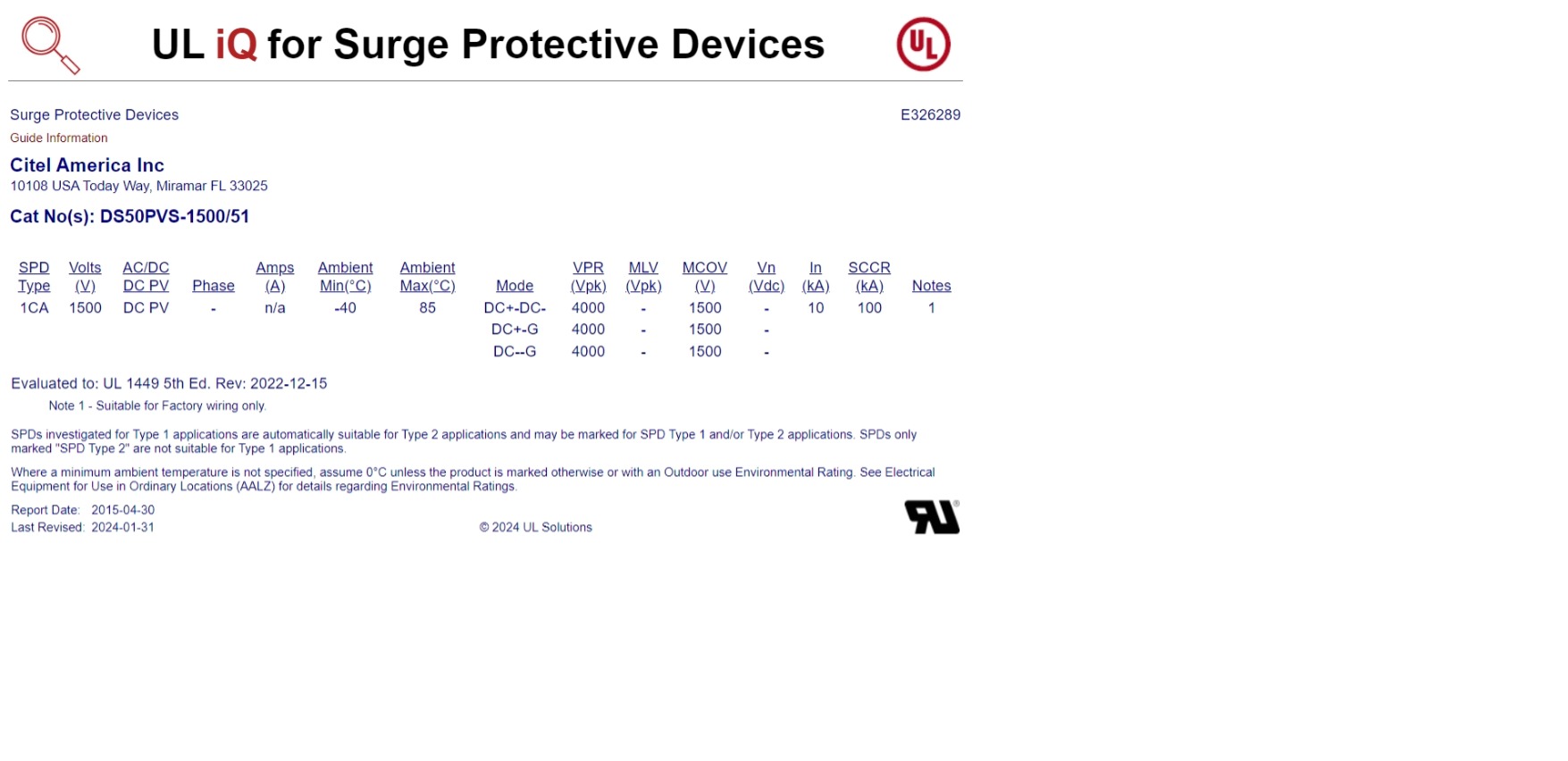 IEC 61643-31 / EN 61643-31 / EN 50539-11 / UL1449 ed.5